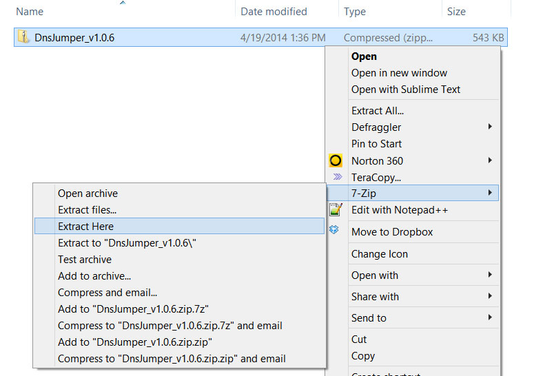 Download program DNS jumper pada tombol diatas, lalu anda akan mendapatkan file DNS jumper dalam bentuk zip,
